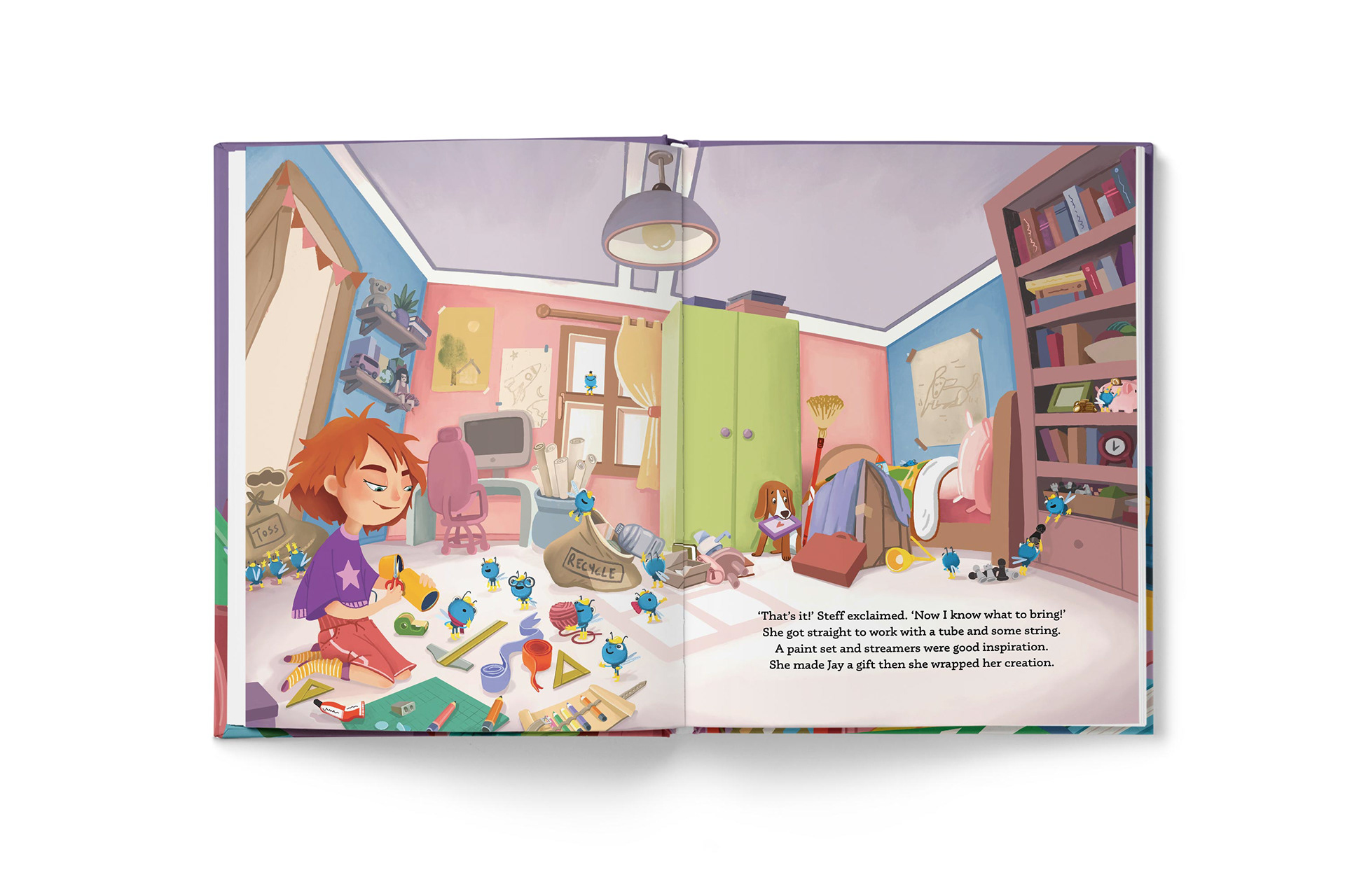 When Steff can’t find Jay’s birthday present in her very messy room, strange creatures called clutterbugs come to the rescue, helping her discover the most meaningful gift of all!