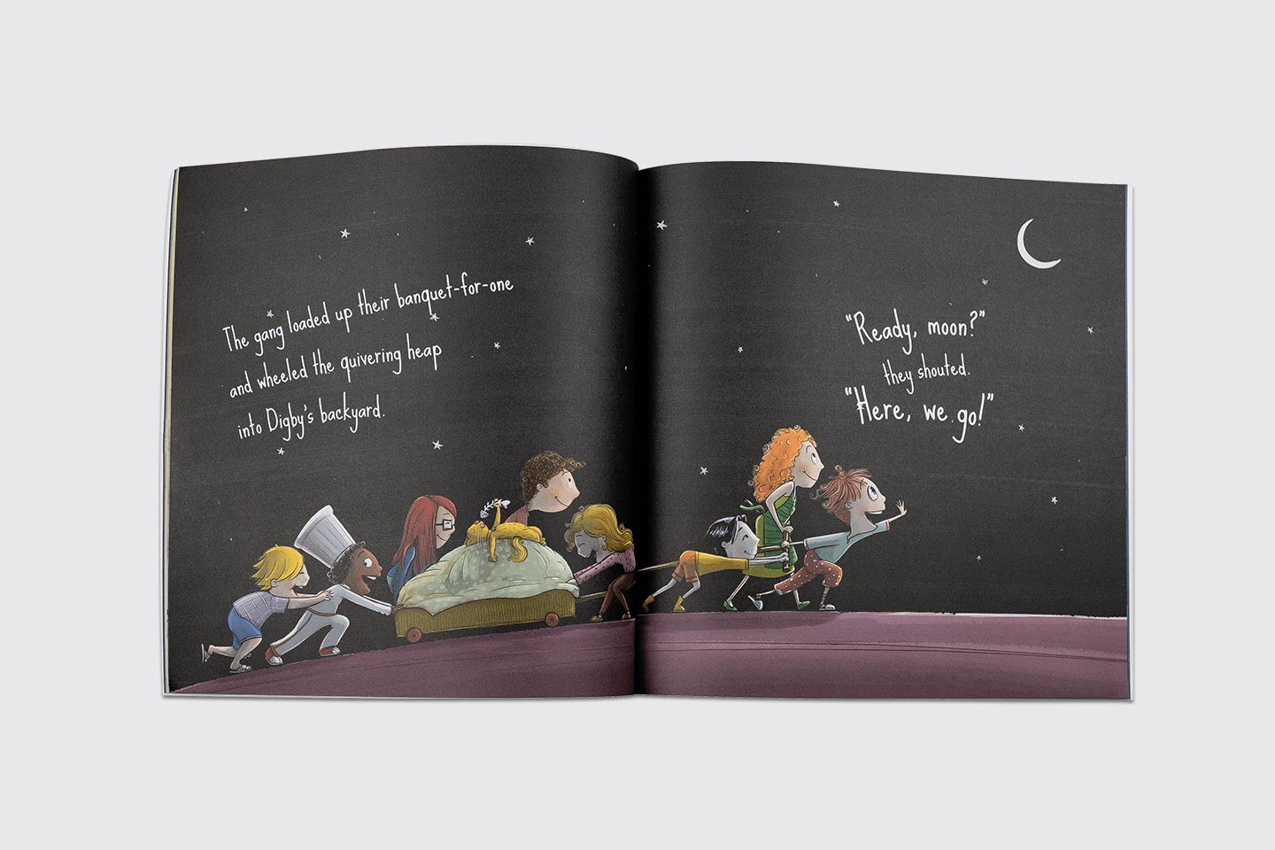 “One night, Digby Fixit wakes to find his room in too much darkness. Discovering the moon in a frightful state, he plans a clever mission to bring back the light of night.