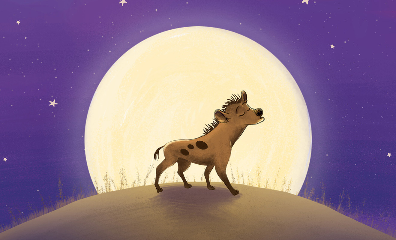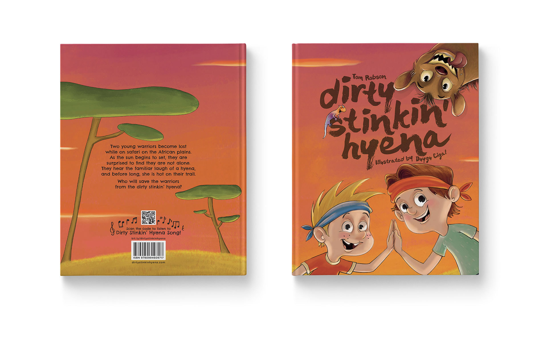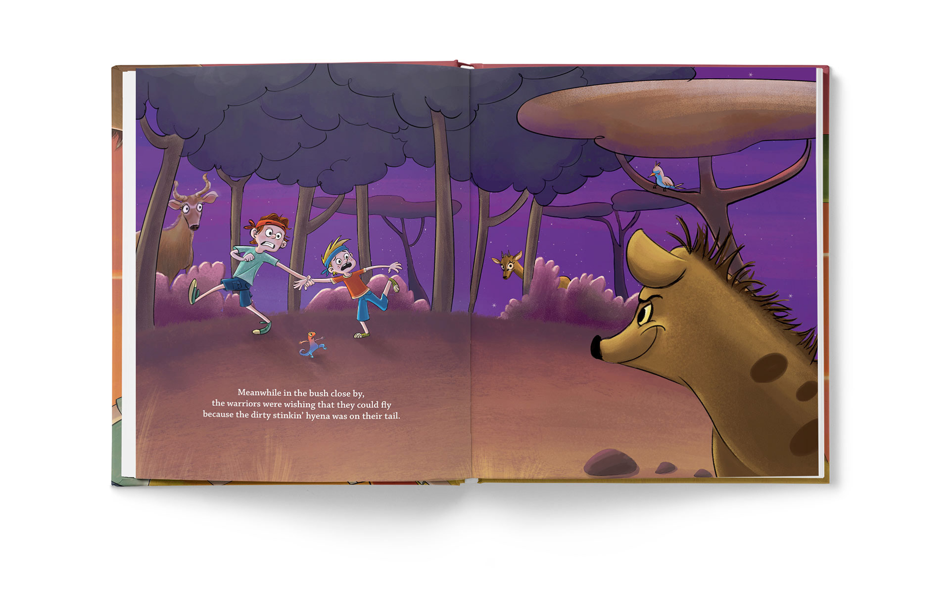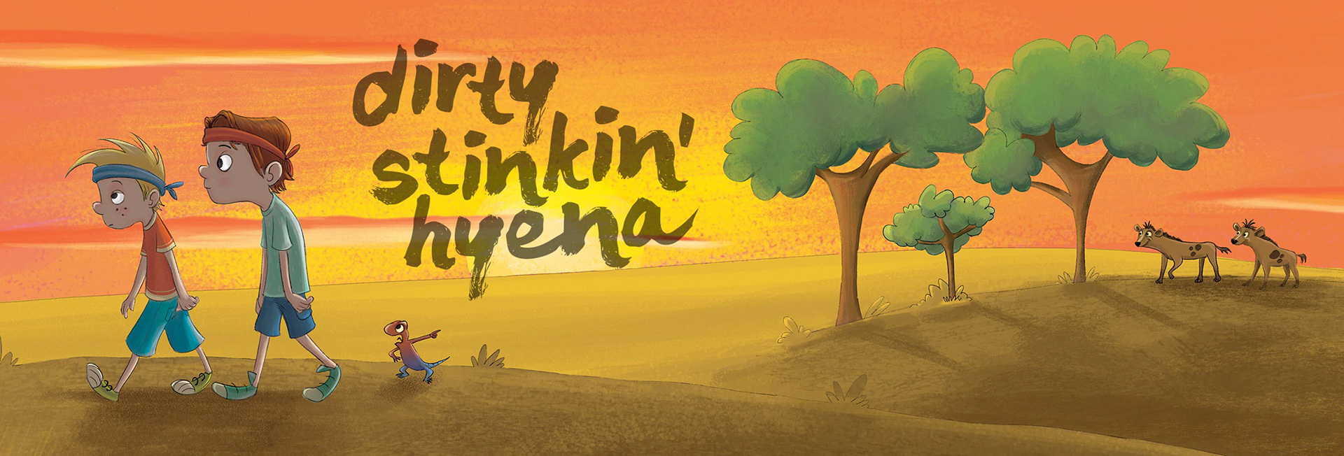 “Two young warriors become lost while on safari on the African plains. As the sun begins to set, they are surprised to find they are not alone. They hear the familiar laugh of a hyena, and before long, she is hot on their trail. Who will save the warriors from the dirty stinkin’ hyena?”