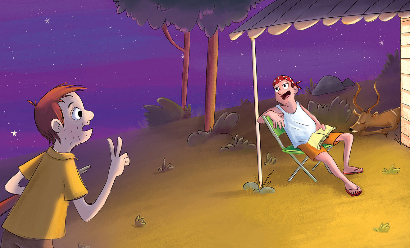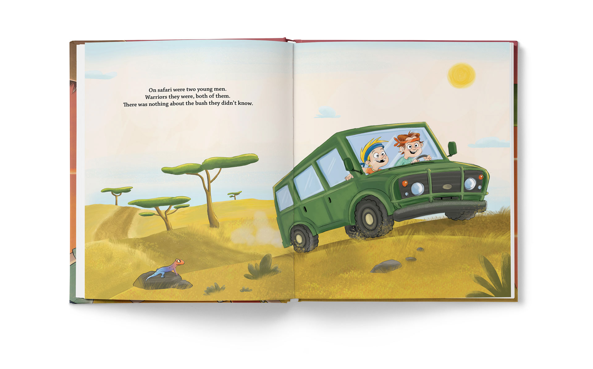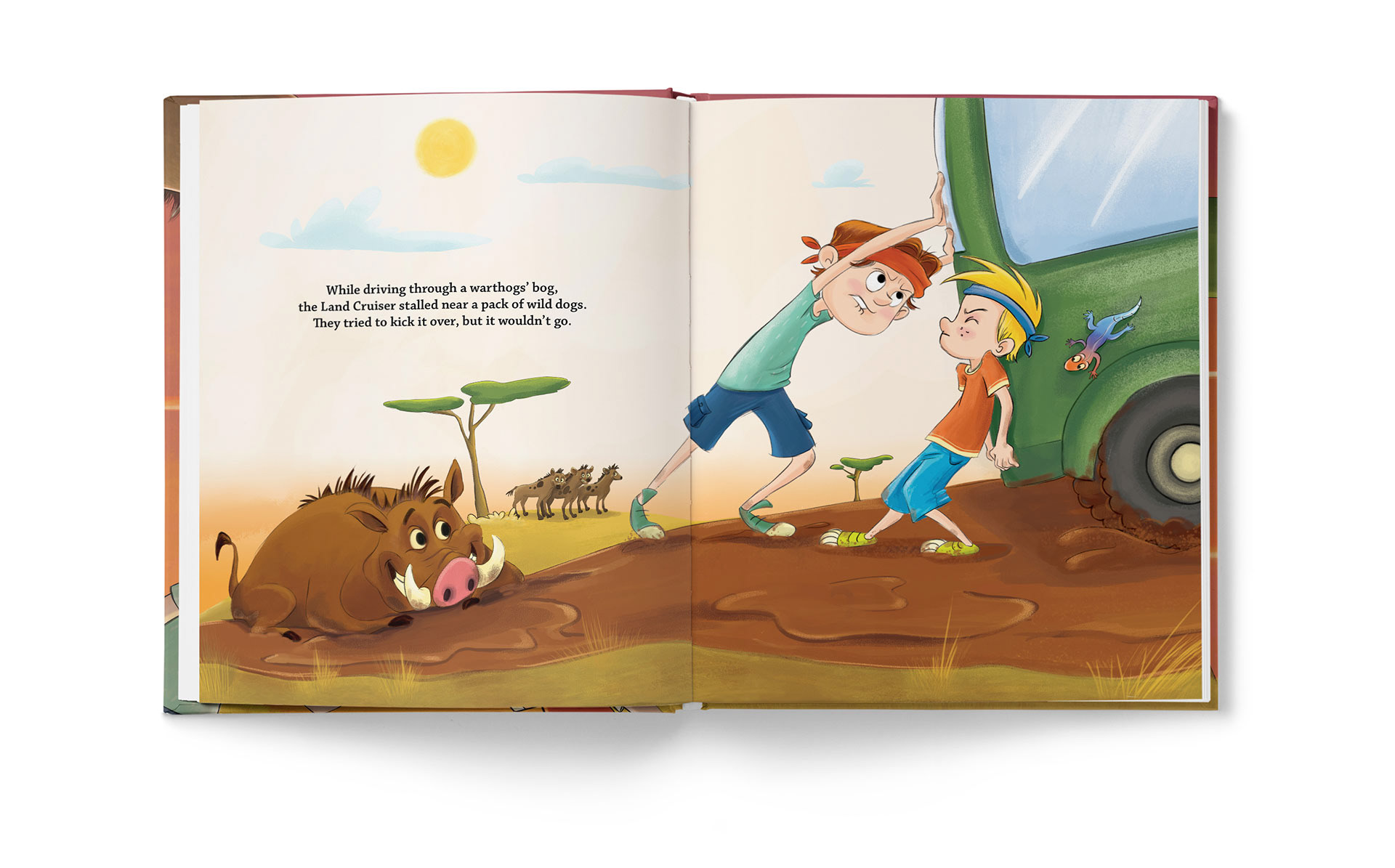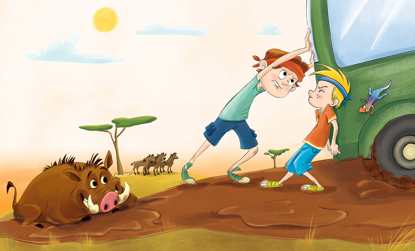 “Two young warriors become lost while on safari on the African plains. As the sun begins to set, they are surprised to find they are not alone. They hear the familiar laugh of a hyena, and before long, she is hot on their trail. Who will save the warriors from the dirty stinkin’ hyena?”