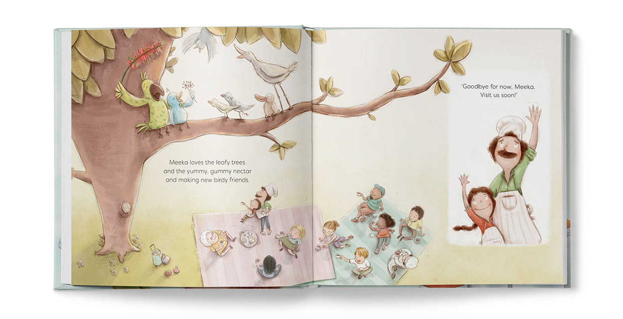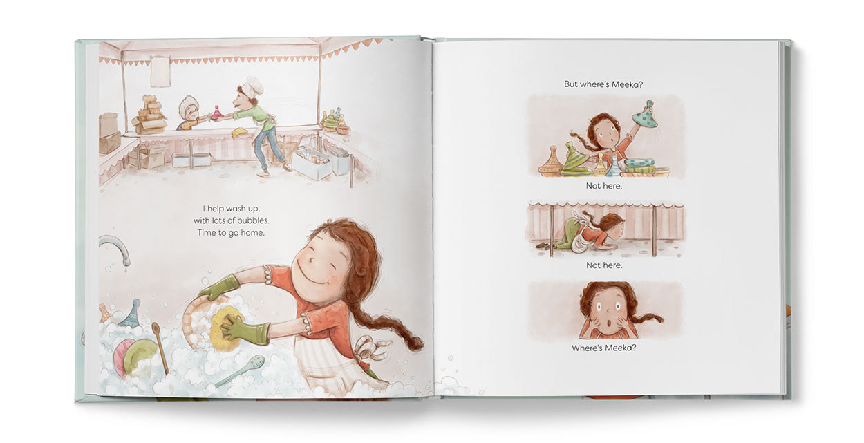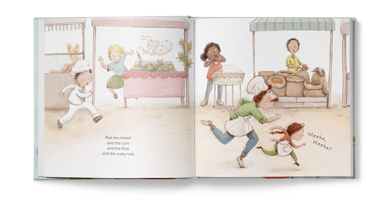 Meeka is a cheeky little market bird who loves getting his beak into everything ooey gooey and sticky licky. One day, during a post-feast snooze in a Moroccan tagine, Meeka is bird-napped by a granny with a need for speed. Will Meeka’s friends rescue him before he becomes bird stew?