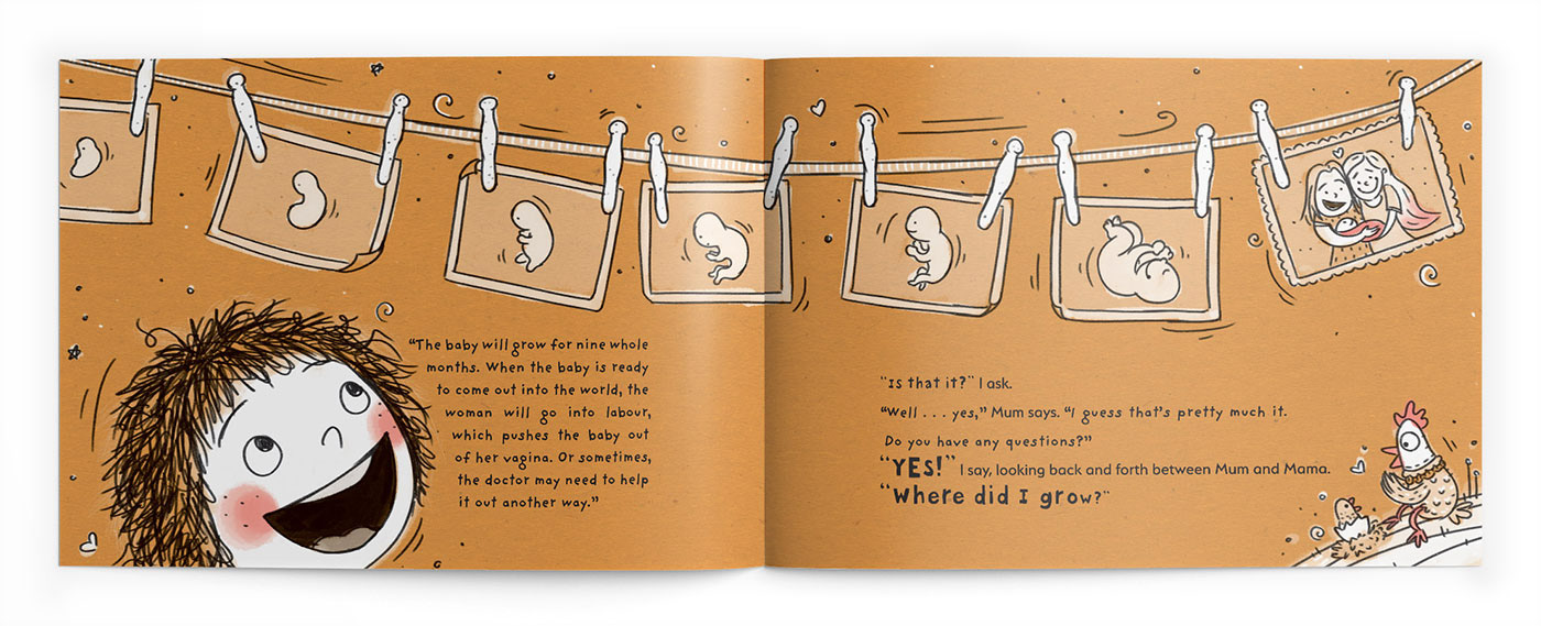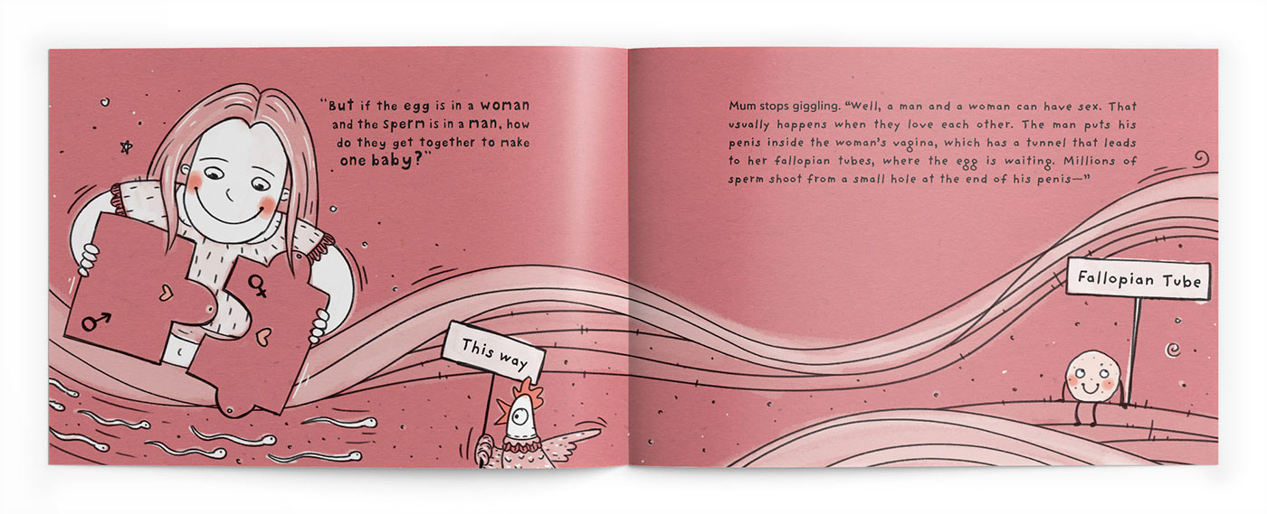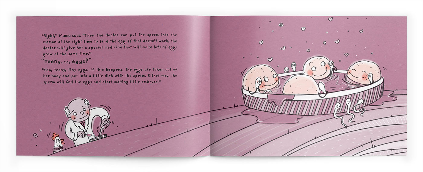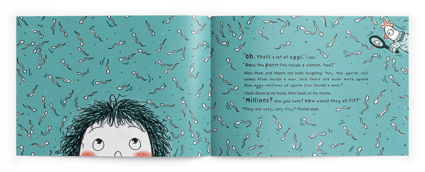 “How can two mums make a baby? Some people might tell you that you were grown from a magical egg. You may have heard that a flying bird delivered you. The real story about how you were made is far more interesting—it all begins with one in many millions.”