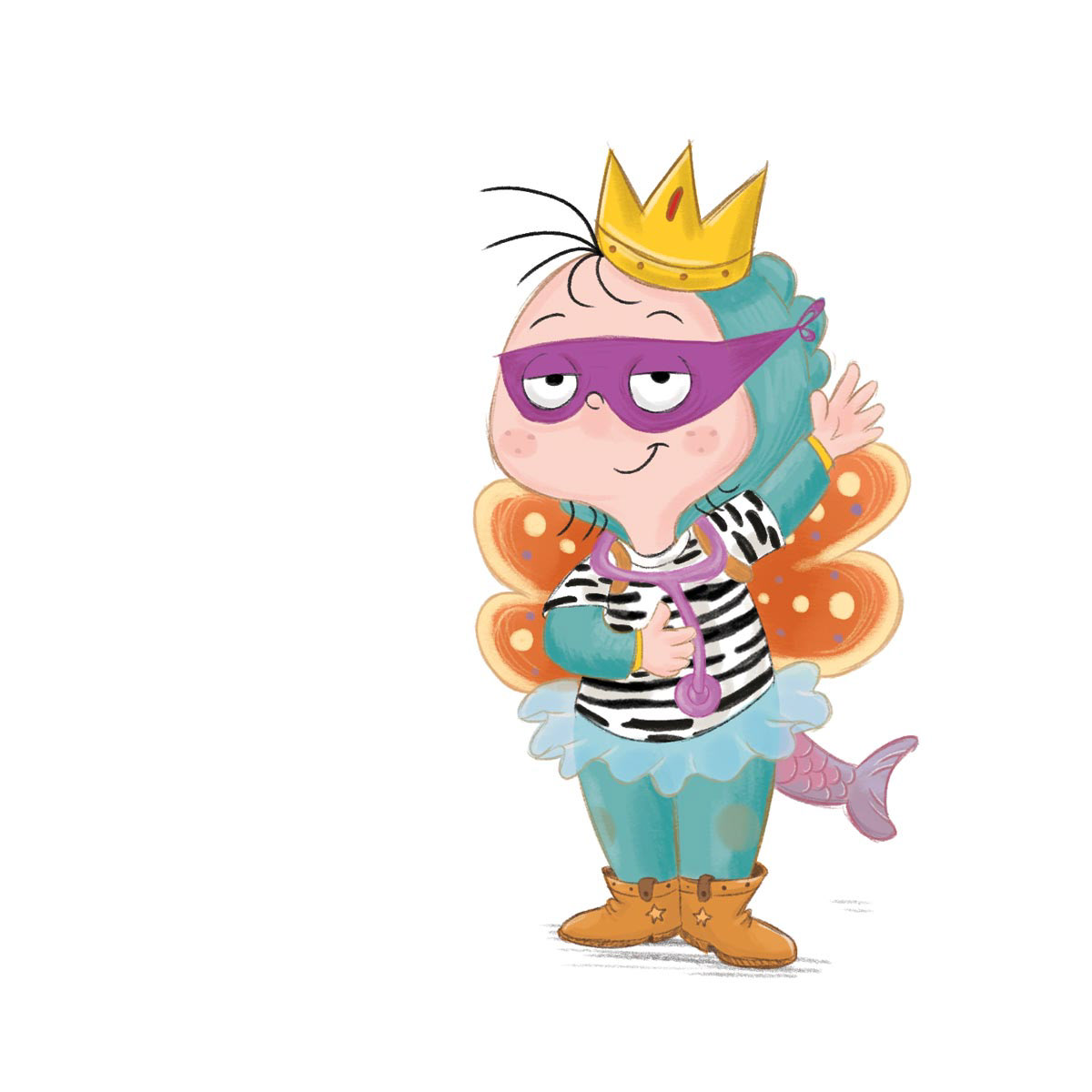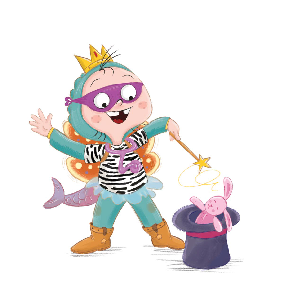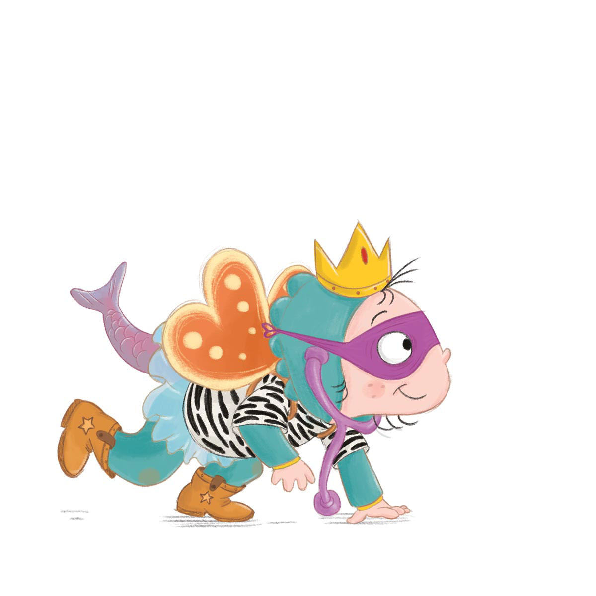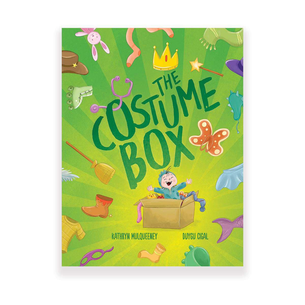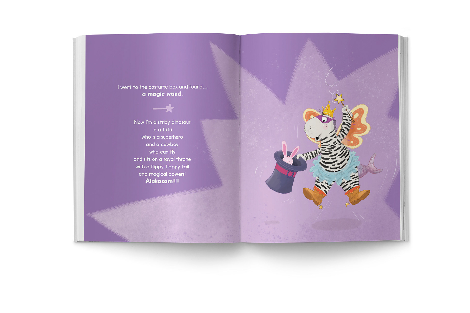 This is an interactive story with stacking elements which follows a child wearing lots of costumes and incorporating the lot into their play.