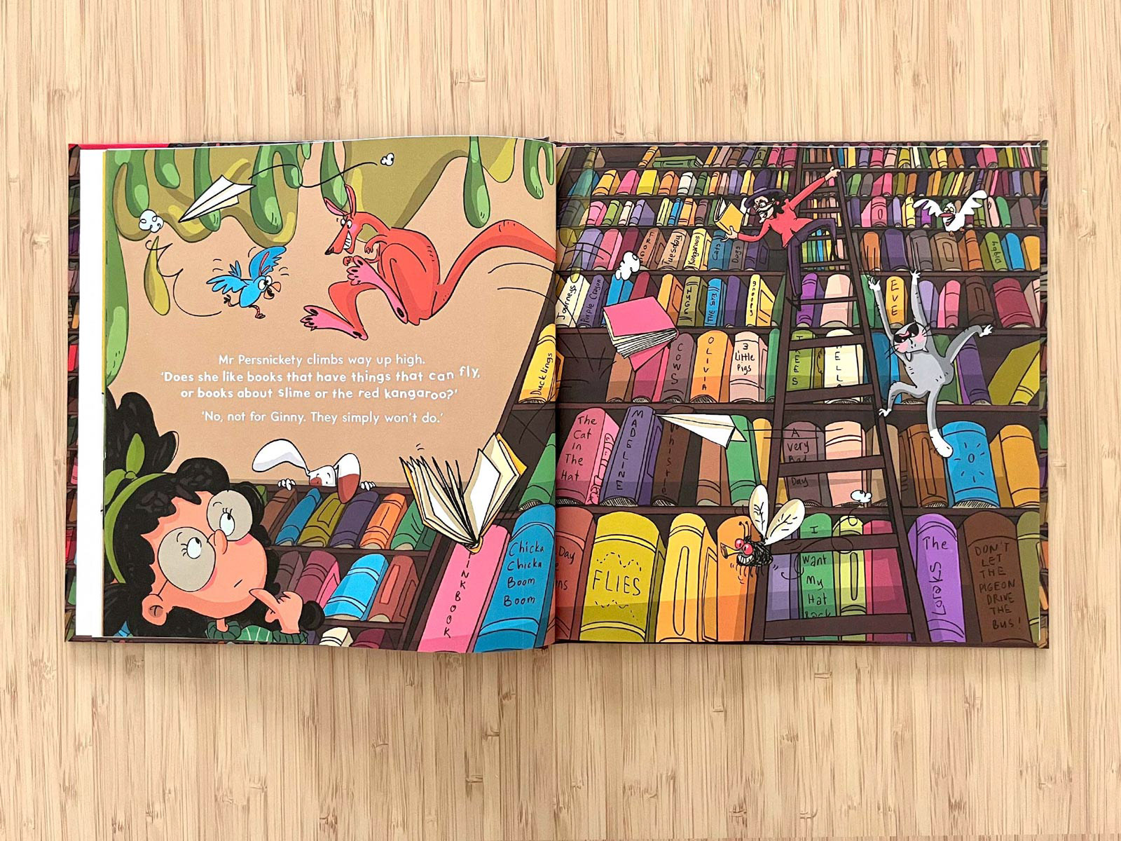 Will Mr Persnickety help Finn find the perfect book in time for Ginny’s birthday? Would she like a book with loopy llamas, impolite pugs, or dinosaur dung?