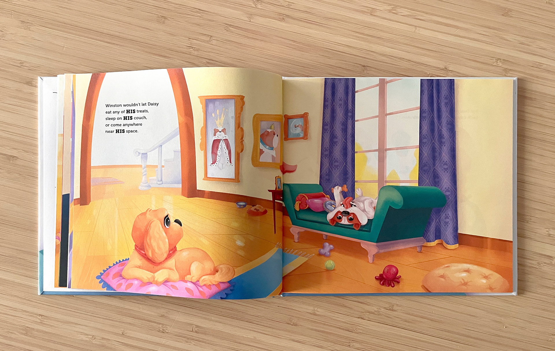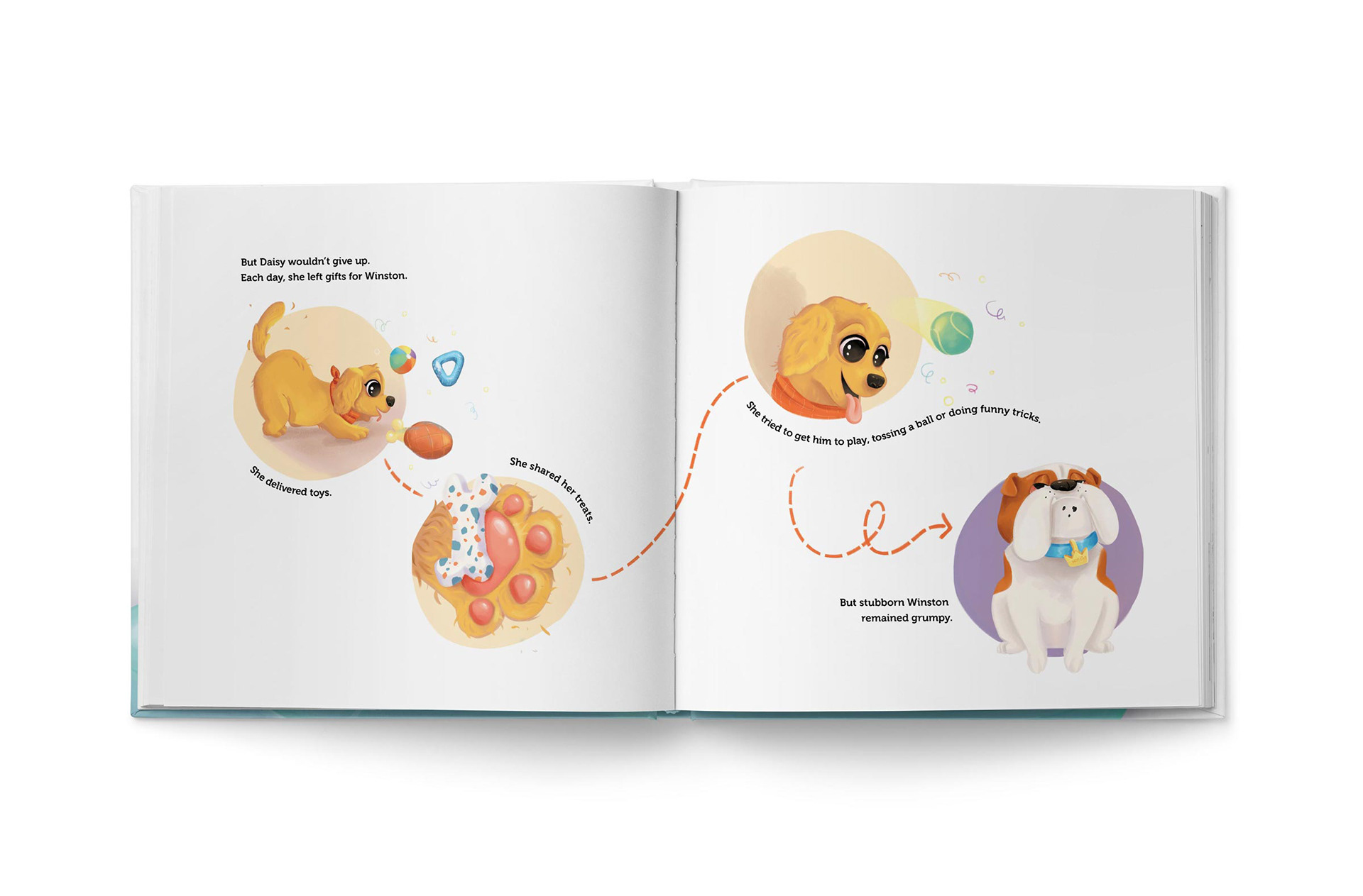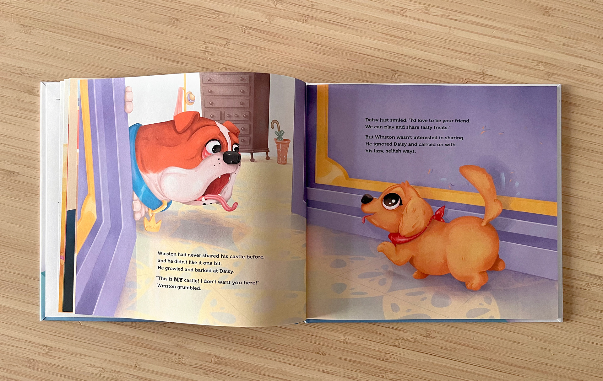 Sharing is a struggle for Winston, the grumpy British bulldog who lives in a selfish, lazy life in his cozy castle. But then a cheerful golden retriever named Daisy moves in!